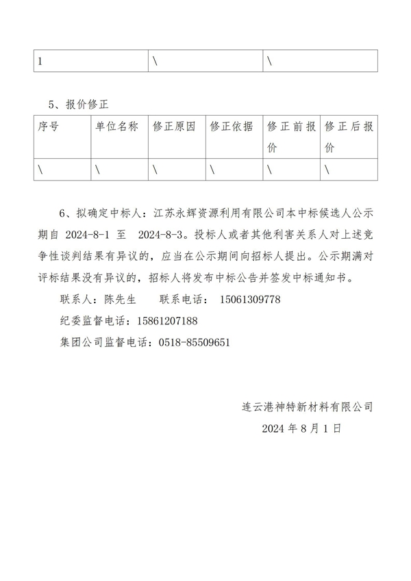 神特公司2024年危廢處置服務(wù)中標(biāo)候選人公示